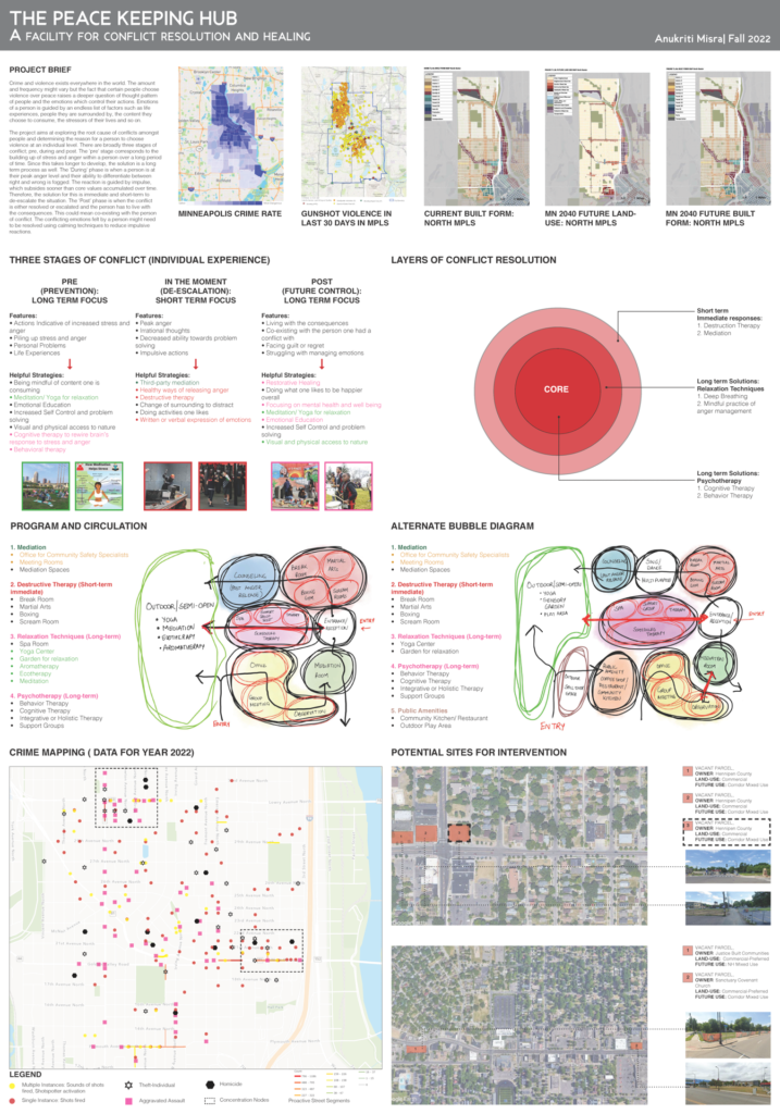 The project aims at exploring the root cause of conflicts amongst people and determining the reason for a person to choose violence at an individual level. There are broadly three stages of conflict; pre, during and post. The ‘pre’ stage corresponds to the building up of stress and anger within a person over a long period of time. Since this takes longer to develop, the solution is a long term process as well. The ‘During’ phase is when a person is at their peak anger level and their ability to differentiate between right and wrong is fogged. The reaction is guided by impulse, which subsides sooner than core values accumulated over time. Therefore, the solution for this is immediate and short-term to de-escalate the situation. The ‘Post’ phase is when the conflict is either resolved or escalated and the person has to live with the consequences. This could mean co-existing with the person of conflict. The conflicting emotions felt by a person might need to be resolved using calming techniques to reduce impulsive reactions.