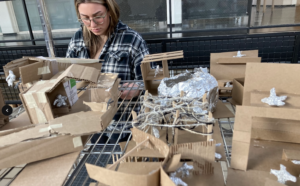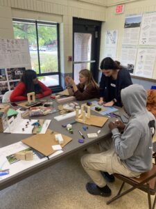 Each Wednesday for two-hour classes, interns and students met at Farview and Creekview Parks to design together. Using drawings, models and deep discussion of the North Minneapolis challenges, the interns provided down-to-earth understanding of the neighborhood context, collaboratively creating solutions grounded in interns’ experience and their training in sustainability. The final proposals were generated and developed during these collaborative workdays.