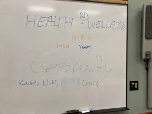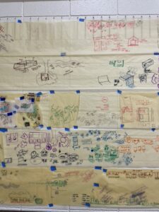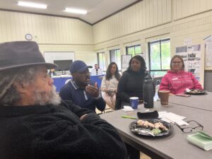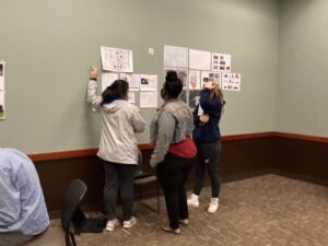 The final celebration was an opportunity to celebrate the student and intern work, and present it to the broader community. Taking place at the Farview Park Community Center where we had most of our Wednesday classes and Co-Design events, it was a festive occasion that included a Land Acknowledgement by Anita Gates, comments on the work by community members and other guests, and refreshments and lunch.
