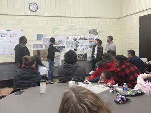 There were several Investing with North Minneapolis project reviews, where the interns and Masters of Architecture Students presented their design proposals for feedback and input. Community members and local professionals represented different neighborhood perspectives and expertise. Some community members were new to the project, while others have served as reviewers for one or multiple years.