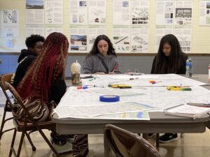 In fall of 2022, seven high school student interns who formed the Northside Safety NET Environmental Initiative collaborated with eight University of Minnesota students on the Investing with North Minneapolis project. Interns and students met and had reviews on Wednesdays at Farview Park Recreation Center. We invited design professionals and experts including community members to reviews and held community design events on two Saturdays, also at Farview.
