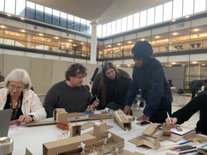 At the second event, participants gave feedback on the designs the interns and students had created in response to the first meeting. Participants developed the schemes further, advancing their own ideas with sketches, models and discussions. Again a meal was shared and speakers contributed to the pool of ideas.
