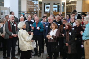 At the first event, Shawn Lewis of the Minneapolis Parks Foundation led the interns, students and community on a walk in the nearby neighborhood. Afterwards, the group shared a meal, heard speakers and gathered for