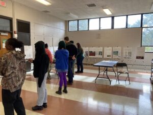where we exhibited our work from 2021, and students and interns engaged with community tables including Project Sweetie Pie, where Michael Chaney introduced them to the event. The two Co-Design events took place at Farview Park.